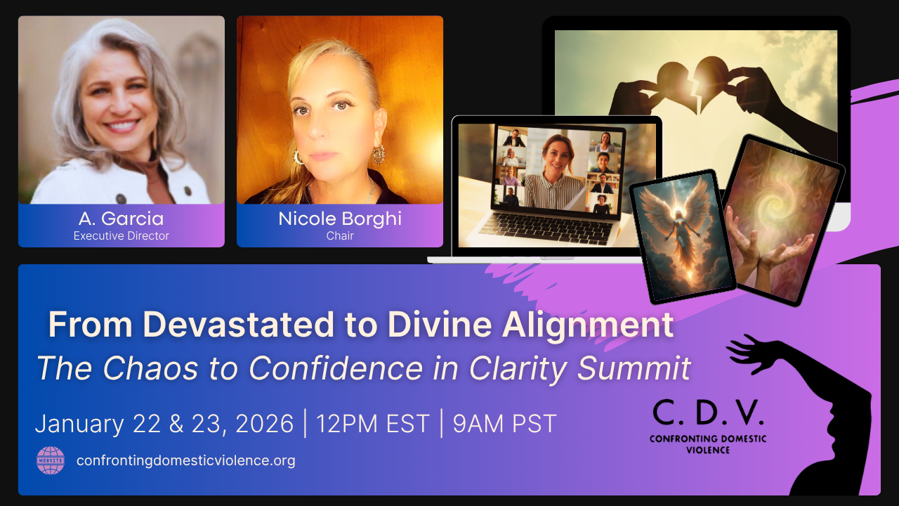 All proceeds from this summit benefit Confronting Domestic Violence, a 501(c)(3) nonprofit dedicated to helping survivors rebuild safe, thriving lives.