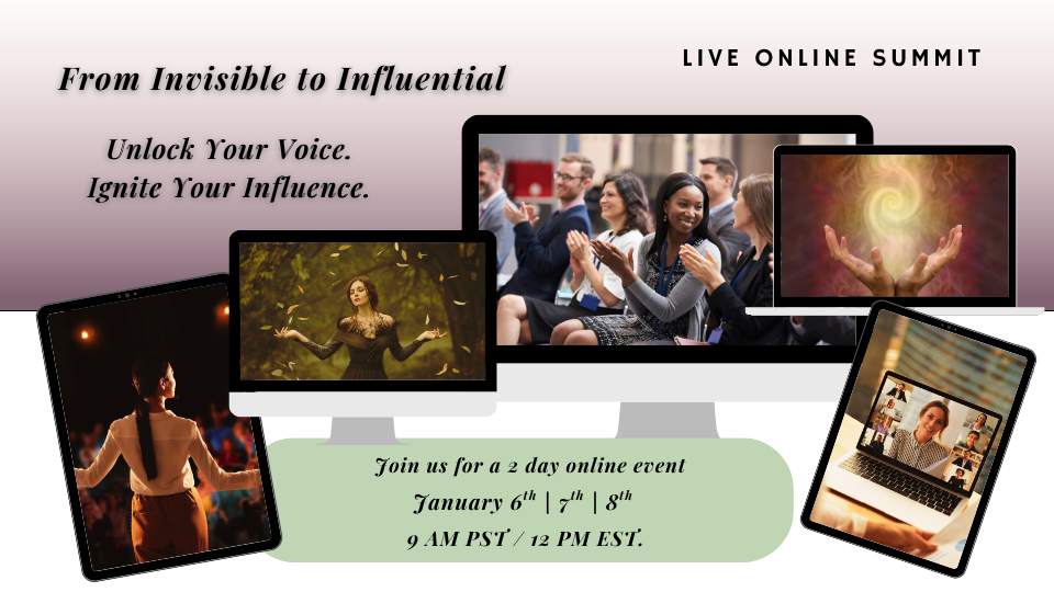 From Invisible to Influential is a high-impact, 3-day virtual summit designed specifically for CEOs, entrepreneurs, energy healers, and purpose-driven business owners who are done hiding their brilliance and ready to step into the spotlight they deserve.